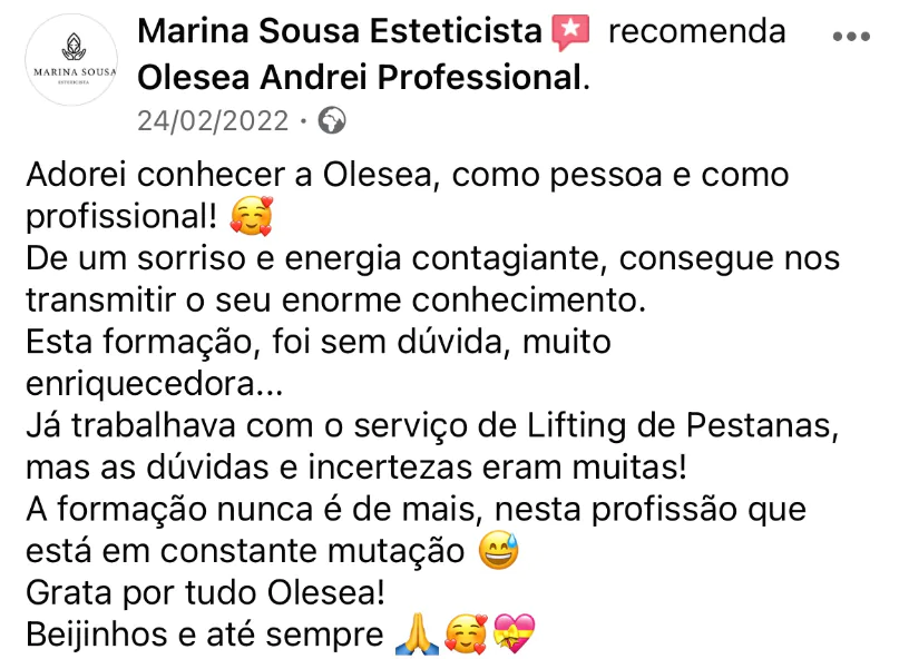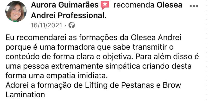 Organizadora e Instrutora de Cursos Nacionais e Internacionais Cosmetologista Organizadora do Campeonato Internacional em Portugal – Mylash emporium Campeonato de Pestanas, Sobrancelhas, Microblading e Maquilhagem em Portugal, Lisboa 2018, 2019, 2021.