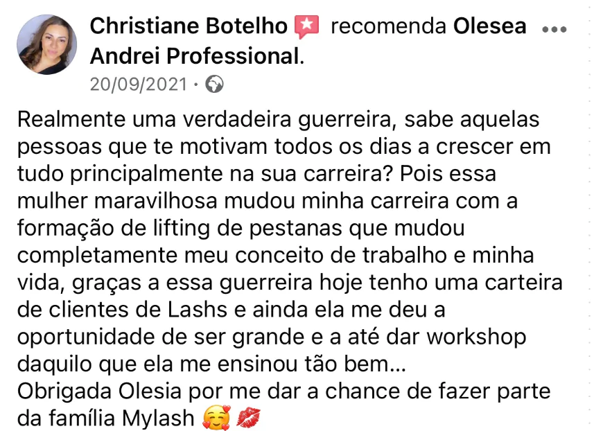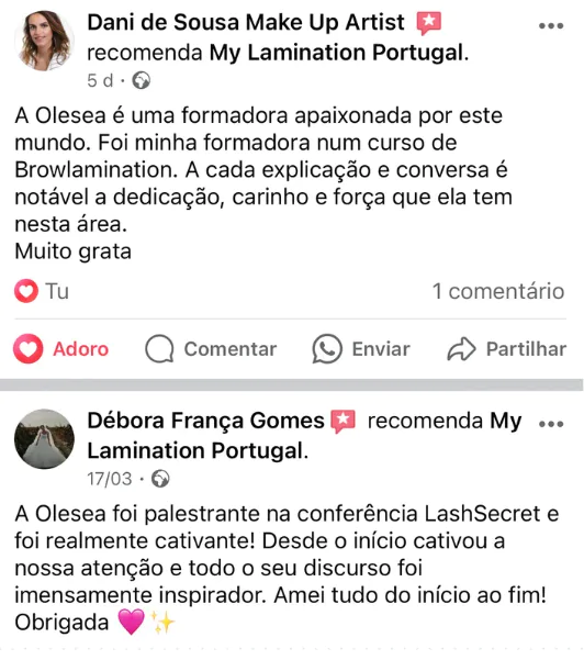 Fundadora da escola – MYLASH PROFISSIONAL® ACADEMY (Portugal) Formadora e distribuidora oficial da MY LAMINATION® em Portugal Fundadora da marca – MYLASH PROFISSIONAL®